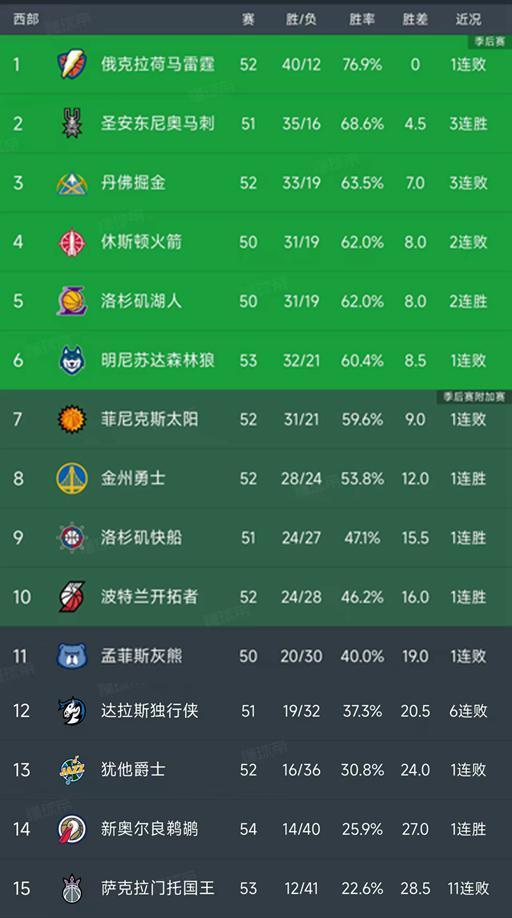 随着快船3分险胜,开拓者20分大胜,西部最新排名出炉!森林狼第6