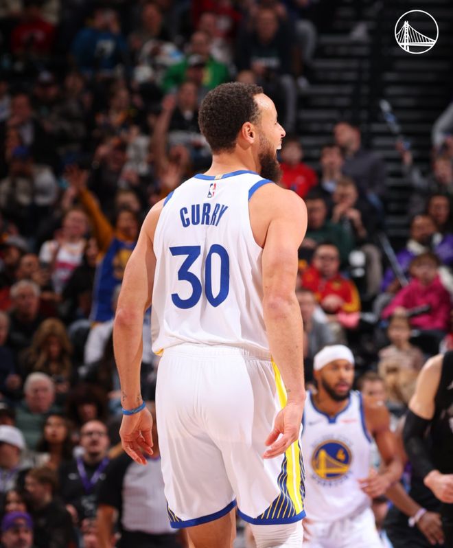 露牙大笑+客场跳舞!37岁库里28分钟27+4三分 里程碑夜兴奋无比