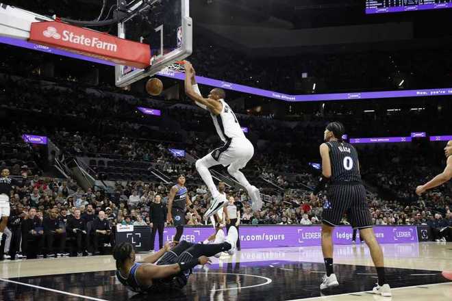 马刺双杀魔术升西部第二:文班25+8+4+5帽 完胜班凯罗19+10