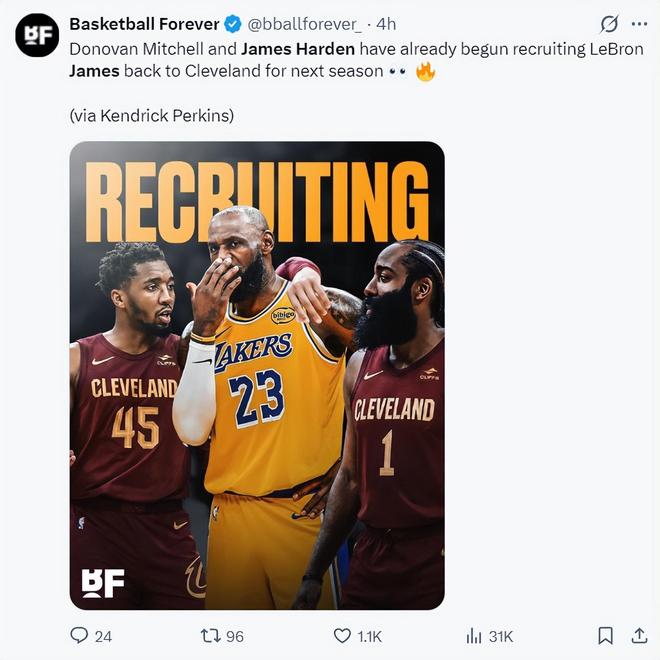 骑士GM曝哈登未申请交易!美记称为冠军+新合同 卡约:米登很可怕
