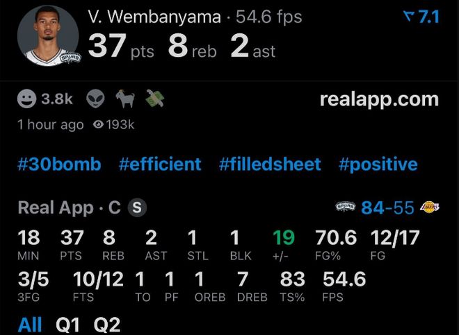 文班亚马脱下袈裟大开杀戒,直接就把湖人当日本人整,开场8分钟,9投8中,轰下25分3板;