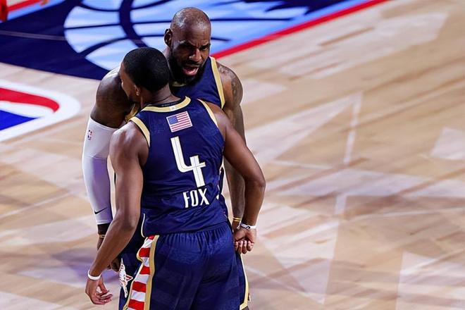 记者问道:你提到了和勒布朗-詹姆斯在一起的那个瞬间以及那张照片。在这样一个周末,这种时刻对你来说有什么样的意义?作为一名球员,能够在大家面前展现出那一面是一种什么样的感觉?对此,福克斯表示:那感觉真的太酷了。几乎我这一辈子,他都在打球。从我记事起,从我开始看球的时候,勒布朗就已经在这个联盟里了。对我来说,我在成长过程中其实并没有什么真正最喜欢的球员。我最喜欢的球员曾经是凯文-加内特(Kevin Garnett),在他退役之后,就真的没谁了。福克斯继续说道:你无法抹杀勒布朗为这项运动以及为这个世界所做的一切。对我来说,那是一张很酷的照片。尤其是看到我的孩子们,这种感觉真的太棒了。而且我有些朋友最喜欢的球员就是勒布朗。我认识很多人的偶像都是勒布朗。所以,那是一张非常棒的照片。