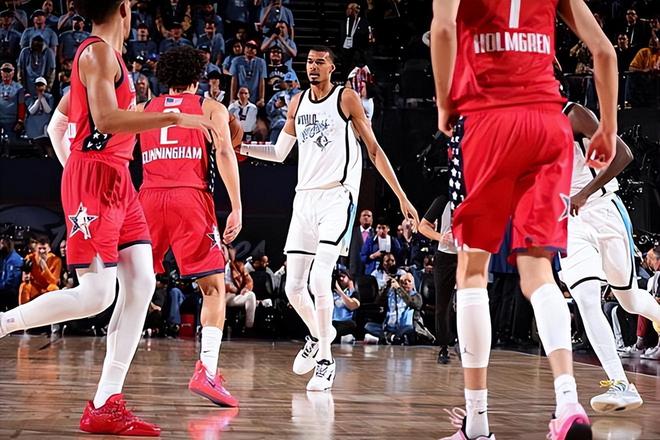 记者问道:你会如何描述与德尼-阿夫迪亚并肩作战的感觉?目前联盟如何看待他的表现以及他在本赛季所取得的进步呢?对此,文班亚马回答道:关于别人怎么看他?我知道大家都在说他得到了很多罚球。所以和他对抗时,需要注意一些。虽然我今年还没和他交过手,但是我的建议还是在防守他时尽量不要出现犯规。我已经不记得在比赛中和他同时在场上打了多少分钟了,但是正如我之前所说的那样,本场比赛中我的体验其实是非常有趣的。我认为阿夫迪亚所展示出的篮球水平很扎实,这一点我们从比赛的结果其实也能看出来。比赛的结果很接近,比赛强度也很大,每一名球员在场上都发挥出了自己的特点,这是一场很精彩的全明星比赛。