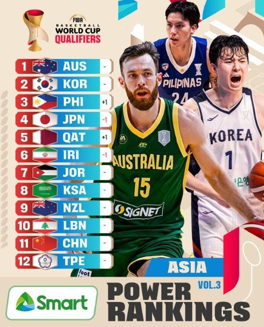 2月19日,国际篮联公布世预赛亚洲第三期实力榜排名,中国男篮排在第11名,前三名为澳大利亚,韩国和菲律宾!