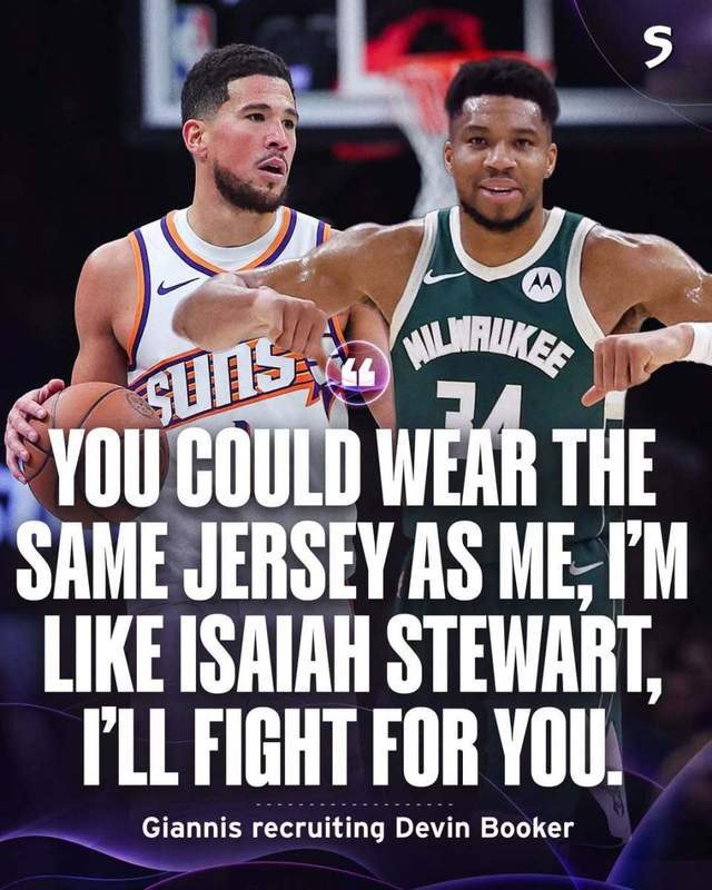 字母招募布克曝光!邀请穿同队球衣:我会像斯图尔特那样为你拼命