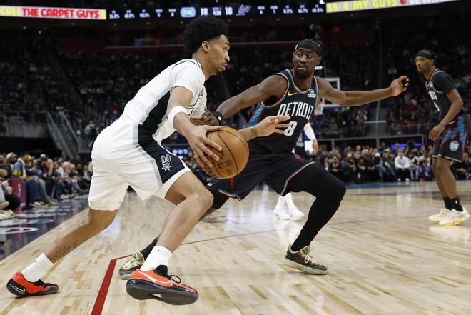 其他球员数据:马刺,卡斯尔16分4板11助、凯尔登9分4板、哈珀5分2板3助、巴恩斯3分2板1助、布莱恩特3分2板1助、科内特2分4板;活塞,霍兰15分11板、罗宾逊13分3板5助、里德10分5板2帽、奥萨尔8分4板2助、詹金斯7分3板、勒韦尔5分1板1助、哈里斯4分8板2助