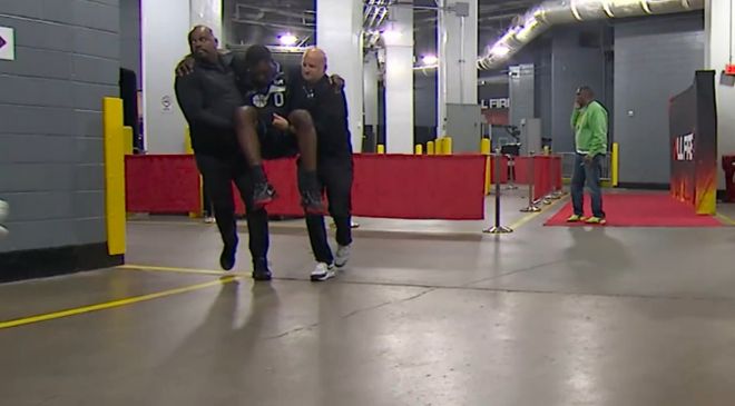 第二节比赛开局,爵士球员威廉姆斯被伊森撞倒,导致腿部出现明显反弯受伤,随后被抬出场,且爵士也宣布他因伤退赛,裁判没有吹罚伊森的动作。