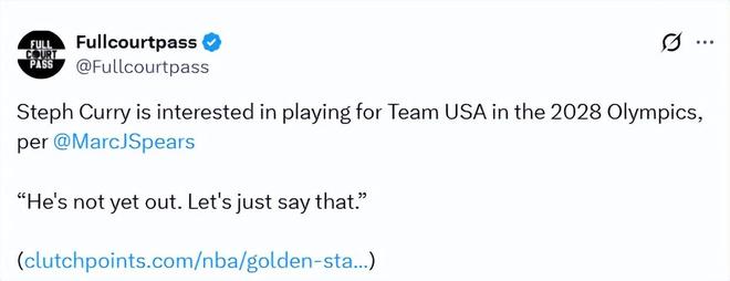 北京时间2月24日,据NBA名记Spears在节目上报道,库里仍有兴趣代表美国男篮出战2028年洛杉矶奥运会。