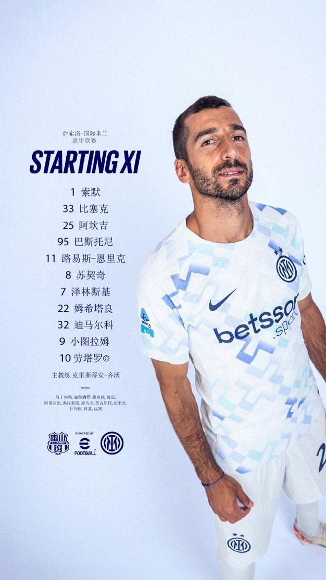 国米客战萨索洛:劳塔罗搭档小图拉姆,姆希塔良出战
