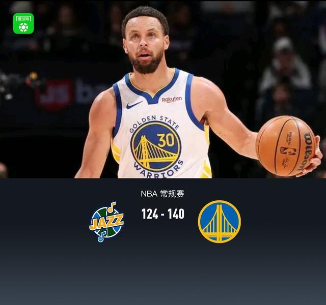 • 勇士8人上双140-124爵士,库里27分,穆迪26+5,马尔卡宁18分
